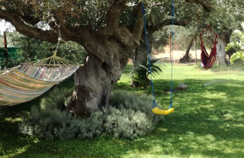 Surrounded by the typical vegetation of the place, it lies on a beautiful plain with a swimming pool, green lawn and an organic vegetable garden where austere and majestic centuries-old olive trees stand, which, with their evocative and harmonious shape, seem to be the natural guardians of so much wonder.