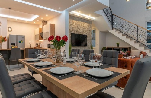 Villa Fantasy is a brand new luxurious holiday villa located in the picturesque village of Mastrinka, just a 10 minute drive from the historical center of town Trogir and a 40 minute drive from the center of the city of Split. This modernly furnished and spacious villa situated in a quiet area provides everything needed for a relaxing vacation with friends or family, including a spectacular seaview spreading from the balcony.