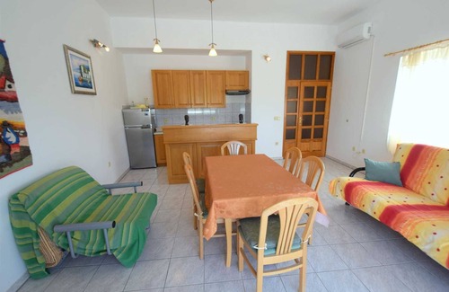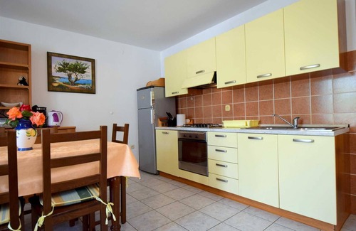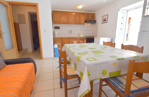 Holiday home Mekotica consists of three apartments and a large swimming pool and is located in Poljica, not far from Malinska. On the ground floor of the house, there is an apartment for 4 people with two double bedrooms, a kitchen with a living room with a sofa bed, two bathrooms, and a terrace. On the first and second floors, there is one one-room apartment with a capacity of 2 people. Each has one bedroom, a kitchen a living room with a sofa, a bathroom, and a balcony. The house can accommodate up to 8 people. The house has WiFi and air conditioning. The pool and barbecue in front of the house are available to guests, and pets are allowed for a surcharge.