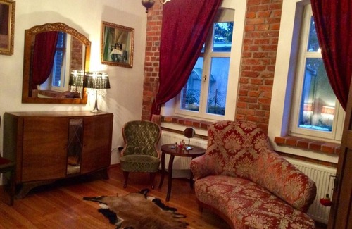 The property is a very spacious (450 square meters) authentic Pomeranian house, built in red brick at the end of the 19th century.The exterior and interior of the house has been completely renovated and decorated with original antique furniture, lamps, paintings and sculptures. The house is only 400 m from the beautiful sandy beach, the pine forest and the spectacular dunes. There are 6 bedrooms with modern quality beds, 6 bathrooms, a huge living room connected to the dining room and the kitchen. In the main living room there are sofas, chaiselongues, armchairs, fireplace, a piano, books, music and a TV with satellite channels. The other smaller living room upstairs has a sofa and armchairs for relaxing. In the house there are 2 bathrooms with bathtubs, showers, bidets, toilets, 2 bathrooms in the rooms (only bathtubs and sinks) and 2 separate toilets with sinks. All bathrooms are in white marble. Next to the house there is a small garden with seating, a swing and a barbecue. Near the house there is a nice sand playground for children, 2 local fish restaurants serving Baltic fish, which is brought directly from the fishing boats. The place is very quiet and safe. There is a road for bikers, which leads through the pine forest. There is WiFi and parking spaces in the property. If guests need more entertainment, they can find it 2 km away in the bigger village called Mielno.The house is fully equipped, the kitchen has everything, bedrooms with towels, bed linen and bathrobes. There is a washing machine, dryer, parasols and deckchairs, blankets etc.Short descriptionOther : Non-smoking houseShort description 1Number of kitchens : 1SurroundingNearby sports facilities : Fishing, Hunting facilities, SailingRental Facilities : Bicycle rental service, car rentalGarden and outdoorGarden facilities : Garden furniture provided, GrillOn-site leisure facilities : Playground