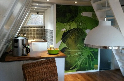 This holiday house of around 54m² has a cosy living room on the ground floor with a sitting corner with armchairs, a dining corner, satellite TV, as well as an open and fully-equipped kitchen including a stove, oven, coffee machine, fridge, toaster and kettle. The ground floor also has a pleasantly large bathroom with a shower, washbasin and WC. The upper floor, accessed up rather steep stairs, has two separate bedrooms, one with a double bed (200 x 200cm) and the other with two single beds (90 x 200cm). The bed linen is generously sized (155 x 220cm). The house is heated with a night storage heater.