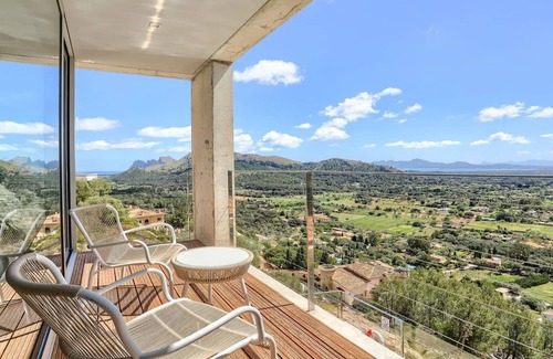 The luxury holiday villa has a huge amount of natural light and 360 degree views of the nearby beaches at Cala San Vicente, Puerto Pollensa and of Pollensa town.