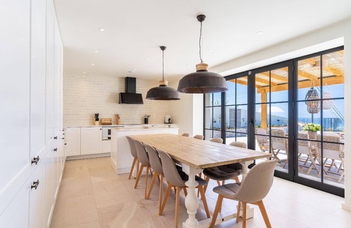 The ground Floor comprises the flowing rooms: A living room with a fireplace, a flatscreen TV with cable channels, stereo system, dining area and guest toilet. There is a fully-equipped kitchen with brand new household appliances such as oven, stove, microwave, fridge, washing machine, coffee machine and dining table.The second floor includes the Master Bedroom with unsuited bathroom and walk-in closet, one double bed bedroom, bathroom, gym and balcony.The third floor includes two double bed bedrooms (one of them with a sofa bed) and one bathroom with bathtub.All bedrooms have sea view.