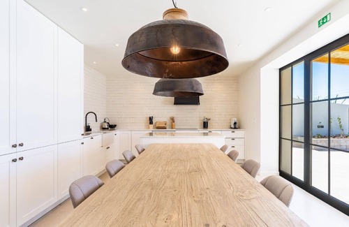 The outside area encompasses the garden, a heated infinity pool, sunbeds, lounge area with outdoor sofa, chairs and table, a dining area, a barbeque space with 2 types of BBQ (one with gas and another one with charcoal). The property has an outdoor private parking space at the entrance door.