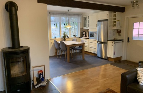 A short nature trail leads from the house to Lake Tiken. The lake is ideal for swimming, fishing or boating. An aluminum rowing boat (Linder) is included in the price. German satellite TV and Swedish television. DVD and CD player with USB connection.