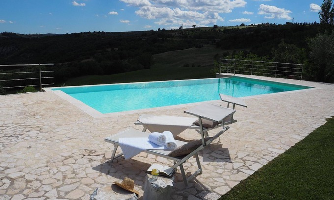 The Villa is a newly built farmhouse for 8 guests near Marsciano, designed by a well-known contemporary architect on the remains of a 17th century Umbrian farm. Inside and out, the authentic features of the time have been respected, but the interior is finished in a beautiful light modern style. This modern villa is the perfect place to stay and enjoy a beautiful infinity pool and indulge in the typical Umbrian summer. The owner has dedicated all her time and passion to the interior design and has created a very personal, warm and unique modern ambience for herself and her guests, which has been studied in every detail. You will perceive this immediately when you enter the Villa.For stays longer than 30 days, a rental contract for transient use will be signed.For check-ins after 8 p.m. there will be an extra charge.
