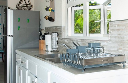 The house features 2-Bedrooms and 1-Bathroom but can also be rented as 1-bedroom(Ask Owner). The bedrooms have air condition for you comfort. Its fully equipped with free internet access, Cable TV, Oven and Stove, mircowave and all the necessary items for your comfort. It also has an outdoor shower for your convenience as well as beach chairs, umbrellas and cooler bags. A basic welcome food pack awaits you on arrival.