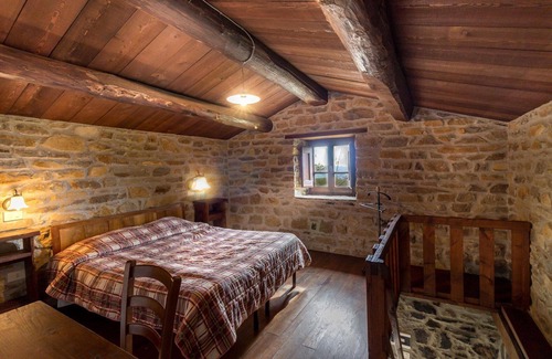 This is a stone villa from the 16th century, which has been restored very carefully. It is located at around 800 metres above sea level, offering guests an extensive view over the Tiber valley and Lake Montedoglio. The house is surrounded by a 300-hectare plot of land with forests and meadows, with many hiking and Nordic walking trails, dug-outs for watching wild animals, a tree house and a mountain hut. Here you can find peace and quiet and absolute privacy, with an unforgettable view!
