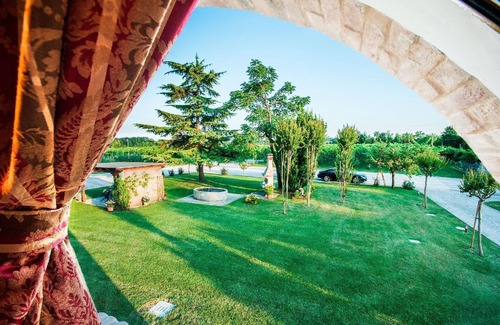 Outside there is an ample garden bordered by rows of vineyards, yielding quality wine savored all round the world (sparkling wine, cabernet, merlot and raboso) that you can taste on the spot.