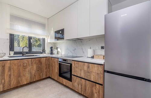 Welcome to the beautiful Holiday house TARA & LANA II.Designed to accommodate up to 6 persons, this holiday house features a combination of modern aesthetics and home-like comfort. On the ground floor of the house there is a living room and kitchen with access to the pool, a bedroom with a bathroom and a separate guest toilet. On the first floor there are two bedrooms, each with its own bathroom and access to the terrace. Guests have access to a private heated pool, an outdoor seating area, a barbecue, charging station for electric vehicles and pool towels and bathrobes. It is a semi-detached house and each house has its own two parking spaces.