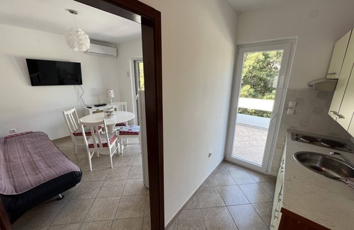 House can accommodate 8 guests. Beds are situated in 3 sleeping rooms, but also in the living room, within 96m2. Guests can use a private terrace to enjoy the warm summer evenings. The house offers the sea view. Food can be prepared using barbecue which is shared with other guests too. This accommodation unit welcomes pets at an additional charge.
