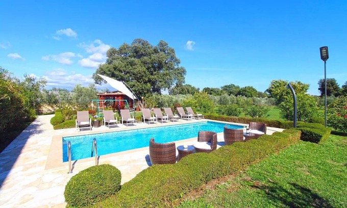 Holiday house with a swimming pool Šišan, Medulin (K-20775) has 5 Bedrooms , 4 Bathrooms, and max occupancy of 10 people. The minimum rental for this property is 1 nights, but this can change depending on the season you plan on staying. Previous guests have given good rated it, and VRBO labeled it a top-rated House because of the excellent services rendered by the owner or manager of this House, and has consistently provided great experiences for their guests. Most families or guests that use it recommend it to their friends and some of them are repeat guests. House has a friendly neighborhood, and the Sisan has interesting places to visit. If you want to learn more about the House in Sisan, such as places to visit and things to do nearby, you can check below to learn more.