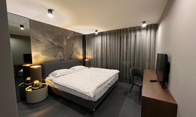 The ground floor area features two double bedrooms with a direct access to terraces with a valley view and a bunk beds bedroom . All bedrooms have its own luxury equipped en suite bathroom. There is also a Finnish sauna in this floor for the guests use.