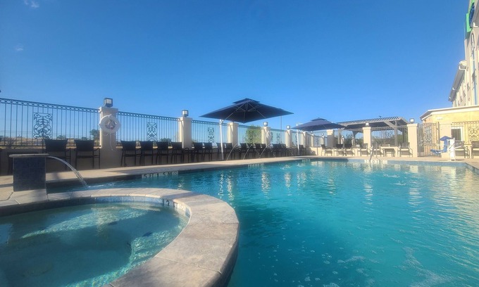 An outdoor pool, a fitness center, and a snack bar/deli are available at this hotel. Free buffet breakfast, free WiFi in public areas, and free self parking are also provided. Other amenities include a 24-hour business center, a hot tub, and coffee/tea in a common area.
