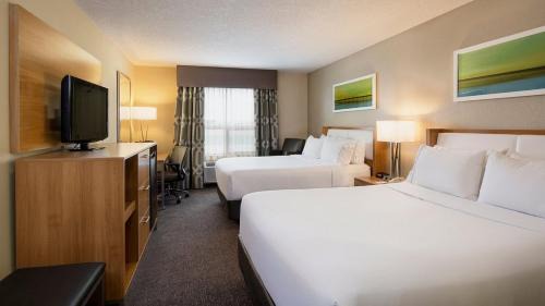 Holiday Inn Express Hotel & Suites Sherwood Park-Edmonton Area by IHG is located in Sherwood Park, within 10 miles of Shaw Conference Centre and 11 miles of Whyte Avenue. With a fitness center, the 3-star hotel has air-conditioned rooms with free WiFi, each with a private bathroom. The property has an ATM and luggage storage space for guests. The rooms at the hotel come with a seating area and a flat-screen TV with cable channels. Some rooms have a kitchenette with a fridge and a microwave. Guest rooms in Holiday Inn Express Hotel & Suites Sherwood Park-Edmonton Area by IHG are equipped with free toiletries and a CD player. Breakfast is available, and includes buffet, continental and Full English/Irish options. Guests will find a 24-hour front desk, a shared lounge and a business center at the property. University of Alberta is 11 miles from the accommodation, while Fort Edmonton Park is 15 miles from the property. Edmonton International Airport is 24 miles away.