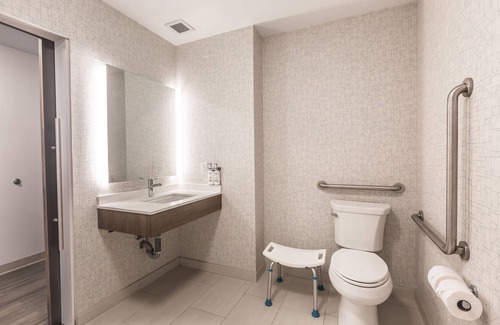 GeneralDoorbell/telephone notification, Wheelchair-width doorways, Low-height counters/sink, Low-height desk, Hand-held showerhead, Grab bar - in bathtub, Wheelchair accessible, Lowered locks/deadbolt, Number of bathrooms - 1, Accessible bathtub, Portable bathtub seat, Lowered peephole/view port in door, Portable shower seat, Lowered electrical outlets in bathroom, No cribs (infant beds), Low-height bed, Wheelchair-accessible bathroom vanity, Bathroom emergency pull cord, Wardrobe or closet, Bed count minimum 1, Roll-in shower, Bed count maximum 1 |