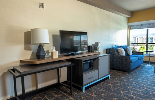 Holiday Inn & Suites Oakland Airport by IHG offers 145 accommodations with safes and complimentary newspapers. A pillow menu is available. 32-inch flat-screen televisions come with premium cable channels. Refrigerators, microwaves, and coffee/tea makers are provided. Bathrooms include bathtubs or showers and hair dryers.