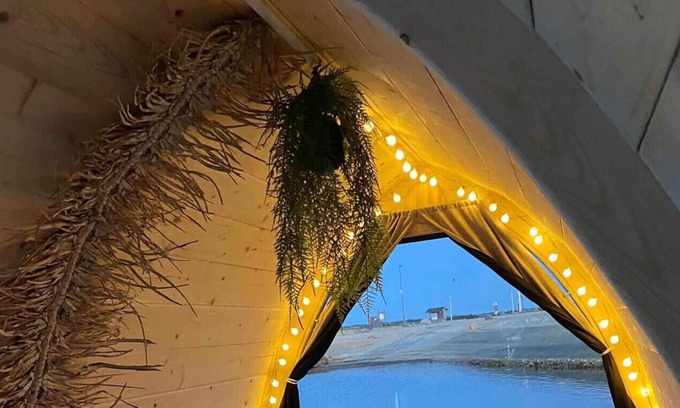 This boathouse is comfort and coziness for up to two people. The cabin is 10 square meters built on a floating sun deck, where you can enjoy the sea view from two deck chairs, which are almost always sheltered. The cabin has a fridge, dining area, cafe set and own bathing ladder. And, of course, there is free parking, free Wi-Fi and power for charging mobile phones. Pets are not allowed in this boathouse.