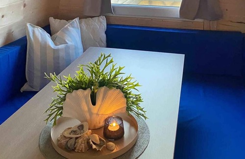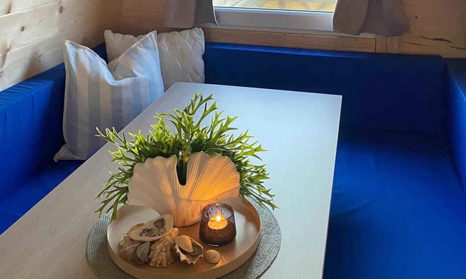 This boathouse is comfort and coziness for up to two people. The cabin is 10 square meters built on a floating sun deck, where you can enjoy the sea view from two deck chairs, which are almost always sheltered. The cabin has a fridge, dining area, cafe set and own bathing ladder. And, of course, there is free parking, free Wi-Fi and power for charging mobile phones. Pets are not allowed in this boathouse.