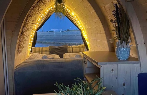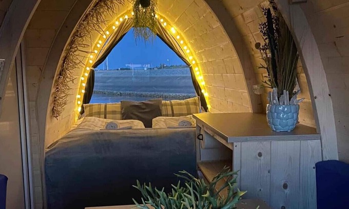 The cabin contains a fridge, dining table, bench, mattresses, small radiator, outdoor lamp and sockets both inside and outside. You can use the sailing room for free. Here you can cook, eat, use the fridge-freezer, microwave and wash clothes. Water and electricity are included in the price.