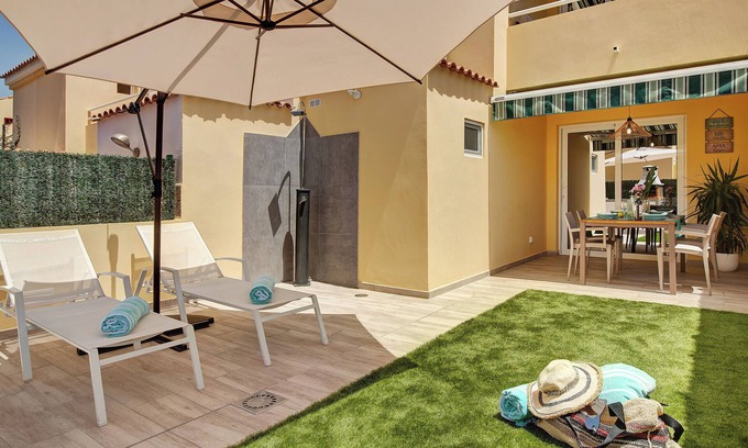 Holiday Villa 'Bungalow Sonemar Sunshine' with Sea View & Shared Pool | House in Maspalomas