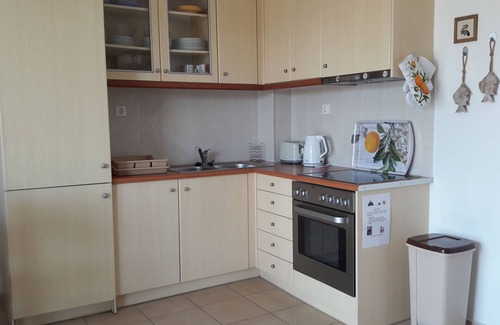 Set among olive groves and with sweeping views of the mountains and the sea, this villa is ideal for lazy, sun-drenched holidays. Spacious and tastefully furnished, it is well suited to modern living with convenient appliances and a modern kitchen. Two bedrooms have huge built in wardrobes as well as air-conditioning and there are two bathrooms. Walk to the local baker to buy fresh bread, laze in the sun on one of the two patios, or at the large pool. After a restful siesta, enjoy a barbecue at home or go to any of the nearby restaurants for delicious home-cooked Greek fare. Pubs and children's entertainment such as a petting zoo, putt-course and football field are also nearby.
