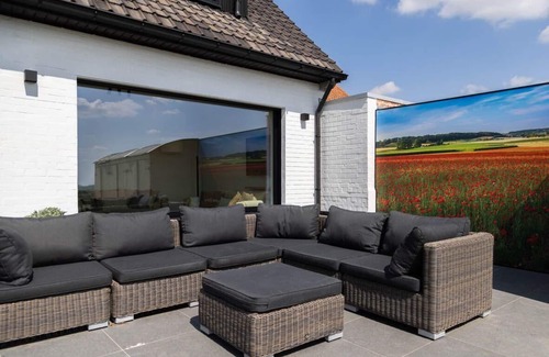 Holiday villa "Wellness Akkerland" is located in Zandvoorde. Holiday villa "Wellness Akkerland" provides accommodation, featuring Kitchen, Balcony/Terrace, Laundry, among other amenities. This House features Kitchen, Balcony/Terrace, Laundry, to make your stay a comfortable one.