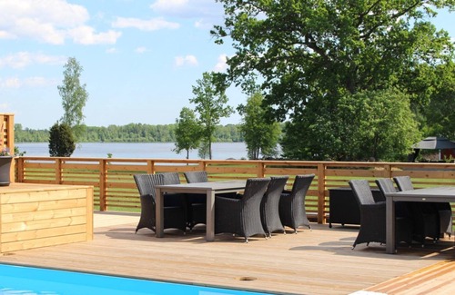 By "Semesteroas Fiskestadssjön" is ment a small and familiar holiday village, consisting of two cores with five identical holiday homes each, arranged around two heated outdoor pools. The cottages are recently renovated in 2018 and have a fantastic location in the South of Småland with a view of the lake Fiskestadssjön which is rich in fish.