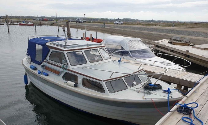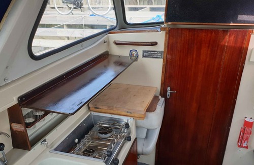 It is a 27-foot fiberglass boat with 4 sleeping places, toilet for night use, fridge and kettle, as well as access to electricity and water. A really cozy atmosphere with room for the small family or a group of friends.