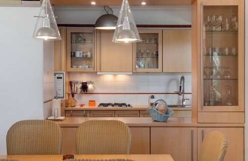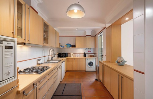 The kitchen, fully equipped with all the necessary appliances and utensils, invites guests to prepare delicious meals while enjoying socialising with the other guests in the adjoining living room.