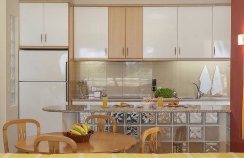 The kitchen, fully equipped with all the necessary appliances and utensils, invites guests to prepare delicious meals while enjoying moments of socialising with other guests in the adjoining living room.