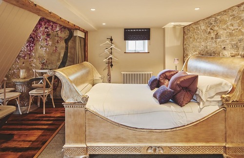Hollyhock Cottage is housed in the beautifully restored, original stable block along with four other cottages (there are eight in total at the estate). Exposed stone walls and original wooden roof terraces provide character, while the high level of attention to detail creates the atmosphere of a boutique country house hotel combined with the warmth of a home. Enjoy romantic strolls in the estate's gardens and admire views of Glamorgan's Heritage Coast, before relaxing in your double-ended rolltop bath. Meanwhile, days out can be enjoyed at local beaches, the Wales Coastal Path and the historic town of Cowbridge.
