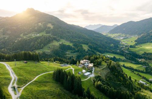 At 3.4 feet above sea level, the eco-friendly Holzhotel Forsthofalm offers direct access to ski slopes, hiking and mountain bike trails. Set above Leogang, it features unique wooden architecture, an award-winning restaurant, and the Sky Spa on the rooftop. Internet access as well as free yoga and fitness classes are offered free of charge. The Sky Spa offers 360-degree views, individual relaxation areas, a fireplace lounge, a hammock room, the SPAbar, and a cardio fitness room with floor-to-ceiling windows. An organic herbal sauna, Finnish sauna, salt steam bath, and vitamin bar are also available. The panoramic rooftop bathtub, the sauna, and the steam room can be booked for private use. Massages and beauty treatments based on local herbs and traditions are also offered. The Kukka restaurant offers vegan, vegetarian, meat and fish dishes, prepared in the open-view kitchen or on the charcoal barbecue. The daily buffet breakfast, the afternoon snack and the 6-course dinner mainly consist of organic ingredients produced regionally, including home-made bread and smoothies. Guided hikes are offered in summer. A public outdoor pool and a swimming lake are close by. In winter, snowshoe hiking and tobogganing are available. During summer, the room rate includes the Löwen Card, which consists of many free benefits and reductions in the Leogang-Saalfelden region. The Holzhotel Forsthofalm was awarded the EU Ecolabel 2012 and the Aphrodite Spa Award for Ecology and Sustainability.