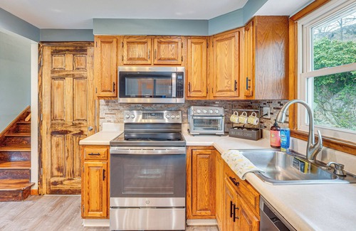 There’s plenty of breathing room for the whole crew when you stay at this Highland Falls, NY, vacation rental. Whether visiting your cadet at West Point, getting out on the river, or exploring stunning state parks, you’ll have the Hudson Valley at your fingertips with this cozy and inviting 4-bedroom, 2.5-bathroom home as your base. Spend your downtime peering through the telescope or huddling up for a movie night.