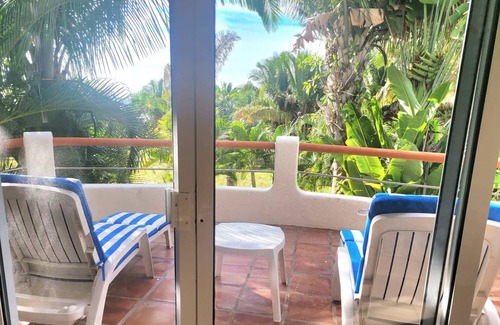 If you are looking for privacy, the duplex is very secluded with a more traditional and rustic feel. The home is equipped with a full kitchen, washer and dryer, two bedrooms with King size bed upstairs and a double bed downstairs and two bathrooms. The living area has a sofa bed for extra space and WIFI,TV and Air Conditioning. The private patio and small pool is perfect for enjoying a swim and the sunset. Enjoy the ocean views from the terrace on the second floor with your morning coffee or sunset drinks. You will enjoy the quiet and peace of the jungle from this private home.