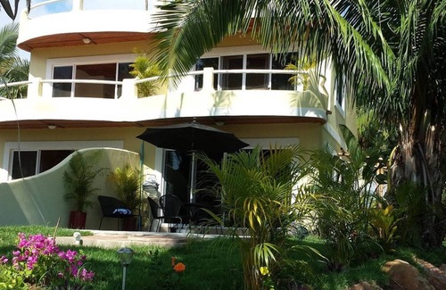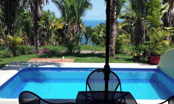 This two-bedroom, two story duplex has it's own private pool and patio, balcony off of the master bedroom upstairs and a rooftop terrace. 180 degree ocean views make it perfect for whale watching and enjoying beautiful ocean sunsets everyday. The duplex is situated in the heart of our development Vista Encantada, a gated community in Riviera Nayarit, surrounded by jungle with spectacular ocean views. We are located 41 miles north of Puerto Vallarta and about 25 minutes north of Sayulita between La Penita and Chacala, Nayarit.