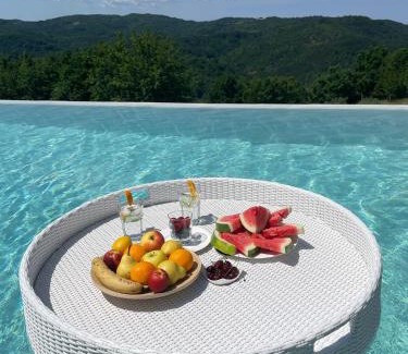 Featuring barbecue facilities, Home Andrea with infinity salty pool offers accommodations in Roč. This vacation home provides air-conditioned accommodations with a balcony. There's an outdoor fireplace and guests have access to free Wifi, free private parking, and an electric vehicle charging station. Providing a terrace and mountain views, the spacious vacation home includes 2 bedrooms, a living room, satellite flat-screen TV, an equipped kitchen, and 2 bathrooms with a walk-in shower. A private entrance leads guests into the vacation home, where they can enjoy some wine or champagne and fruit. This vacation home is allergy-free and non-smoking. Guests can eat at the on-site traditional restaurant, which is open for dinner, lunch, brunch, and high tea. For guests with children, the vacation home features outdoor play equipment. Guests can spend time in the water park or enjoy the infinity pool and garden at Home Andrea with infinity salty pool. Aquapark Istralandia is 28 miles from the accommodation, while Pazin Castle is 19 miles away.