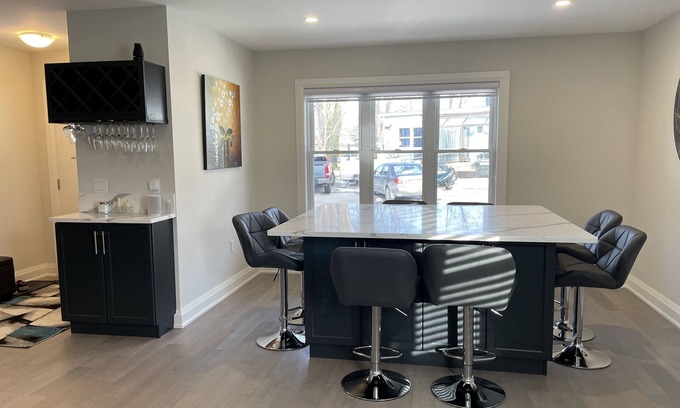 Getaway to lovely Crystal Beach and stay in comfort! Unique, new house — 3 bedroom, 2.5 bath, sleeps 6. Seeing is believing. Fully furnished and equipped for your comfort and some pampering. Kitchen has gas stove, dishwasher, microwave and large island with seating for eight. Hardwood floors throughout the main level and cozy carpet upstairs in the bedrooms. After a busy day you will be able relax and read or stream your current favourite show from the comfortable leather reclining sofa or love seat. The intimate backyard has bbq and lawn furniture for experiencing nature. Parking available in driveway.