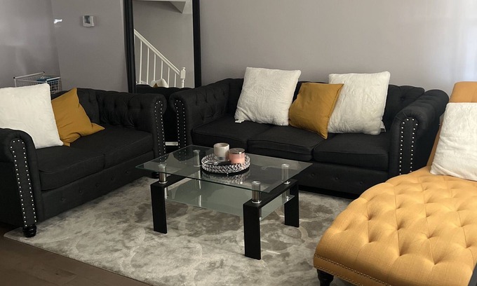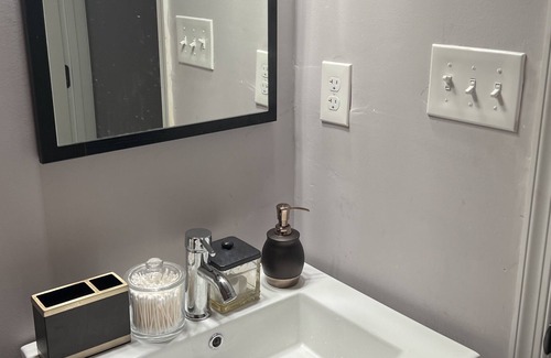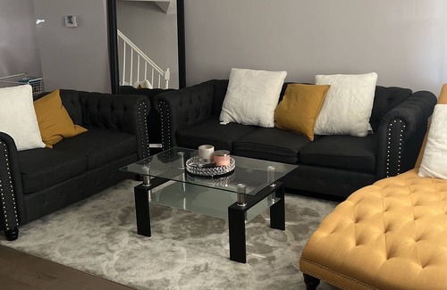Forget your worries in this spacious and serene space. Two bedroom house with a fully finished basement. It has 2 full bathrooms as well. Queen bedrooms in each room & a “beauty” room you can go in and do your make up in. Fully stocked bar that you can use as well as hookah available. There is free parking on the premises but there is 1 parking spot in the back of the house.