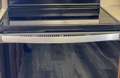 The kitchen is fully stocked to make any size meal you may need. Feel spoiled using brand new electric oven and storing your cold and frozen goods in side by side refrigerator with water and ice dispenser.