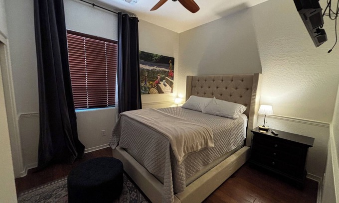 1 bedroom, 1 bath fully furnished bedroom in my home w/ a split floor plan. So you have a guest wing to yourself. Come with just your clothes & toiletries!