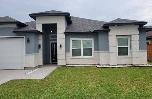 Beautiful new spacious home with close proximity to South Padre Island,, Space X, and Mexico. As soon as you open the door you will fall in love with the open feel of the house. The master bedroom is huge and cozy. There is a dedicated space with a desk in case you need to work from home as well. We currently have a surveillance camera in front and the back of the house.