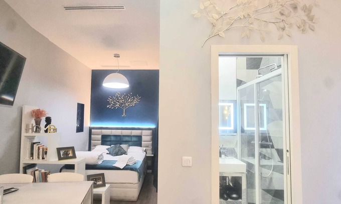 L'appartement se situe au 3è étage avec ascenseur, il est composé d'un salon avec cuisine ouverte entièrement équipée, coin chambre avec un lit particulièrement confortable (literie d'excellence), un espace salon avec un canapé convertible (2 places) et une petite salle de douche avec WC.