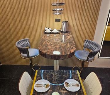 Food & DrinkTea/Coffee maker, Bottle of waterBathroomToilet, Free toiletries, Guest bathroom, Shampoo, Slippers, Towels, Towels/Sheets (extra fee), Toothbrush, Bidet, Shower, Hairdryer, Toilet paper, Bathtub or shower, Conditioner, Body soapGeneralFan, Soundproof, Tile/Marble floor, Laptop safe, Smoke Alarm, Key access, Key card access, Private entrance, Safe, Iron, Fire extinguisher, Air conditioningMedia & TechnologyStreaming service (like Netflix), Flat-screen TV, TVOutdoorsTerrace, BalconyLiving AreaDining area, Desk, SofaKitchenCleaning products, Kitchen, Dining table, High chair, Electric kettleBuilding CharacteristicsSemi-detached |