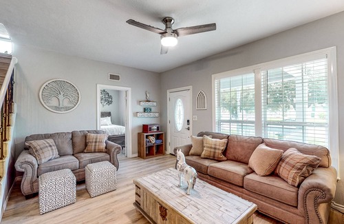 The home's bedrooms are equally comfortable with their tasteful decorations, high-quality linens, and ample natural lighting. Two feature smart TVs. For maximum comfort, tune the central air-conditioning to your liking each evening before bed.