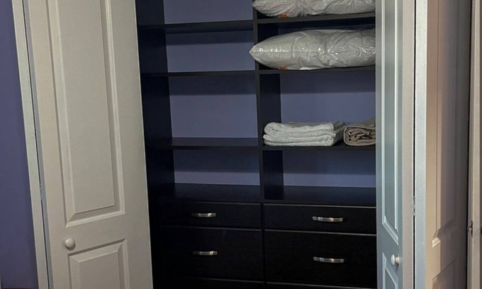Enjoy the luxurious King bed and a regular closet, offering plenty of space for your belongings.