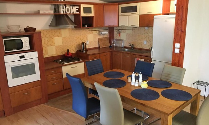 Home offers accommodations in Veľký Slavkov, 15 miles from Strbske Pleso and 18 miles from Treetop Walk. Both free Wifi and parking on-site are available at the apartment free of charge. Offering a terrace and garden views, the spacious apartment includes 2 bedrooms, a living room, satellite flat-screen TV, an equipped kitchen, and 1 bathroom with a bath. Towels and bed linen are featured in the apartment. The property has an outdoor dining area. Guests at Home can enjoy hiking nearby, or make the most of the garden. Dobsinska Ice Cave is 22 miles from the accommodation. Poprad-Tatry Airport is 3.1 miles away.