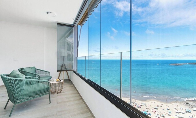 This beautiful beachfront flat with large windows and spectacular views, is ideal for couples and families and business trips, as it can accommodate up to 3 people. With a spacious bedroom with sea and beach views, double bed, fitted wardrobes and a bright living room with sofa bed and air conditioning with panoramic views of the beautiful beach of Patalavaca. With an independent equipped kitchen, a bathroom and a living area where you can have lunch, relax and enjoy moments of disconnection. With Wifi Fibre Internet designed for teleworking, Smart TV and lift.
