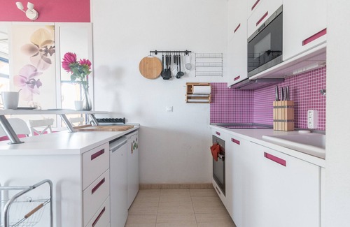 With exquisite attention to detail, this apartment is ideal for couples and families as well as for business trips, as it can accommodate up to 3 people. With a cosy bedroom with king size bed and fitted wardrobes, living room with sofa bed, a bathroom with shower, fully equipped kitchen with all appliances, terrace with sea and mountain views and lounge area, where you can have lunch, sunbathe and relax. With fibre Wifi Internet and desk, designed for teleworking, a TV in the living room, communal swimming pool, lift and everything you may need.