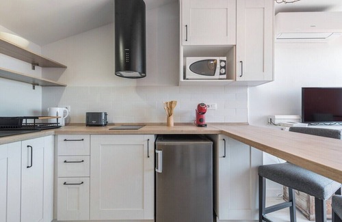 This magnificent flat with a strategic location is ideal for couples, as it can accommodate two people. It has a cosy bedroom with a double bed made up of two single beds that can be joined together or separated according to your needs, a bathroom with shower, a bright open-plan kitchen equipped with everything you need and connected to the living room with a comfortable sofa, Smart TV with Netflix and HBO, and direct access to the terrace area where you can enjoy a good breakfast while you enjoy the atmosphere of the place. The accommodation is also air-conditioned for your comfort.